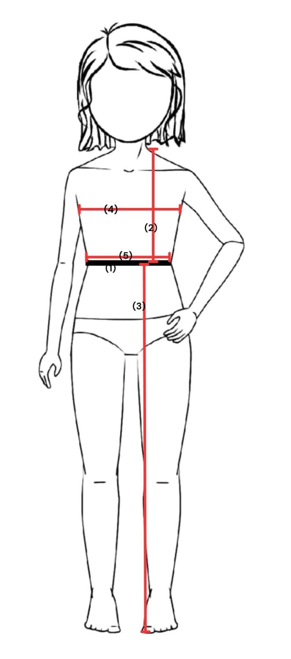 1. Contorno de Pecho/Busto:Mide alrededor de la parte más ancha del pecho, pasando la cinta métrica por debajo de los brazos y a través de los omóplatos en la espalda. Asegúrate de que la cinta esté recta y paralela al suelo.